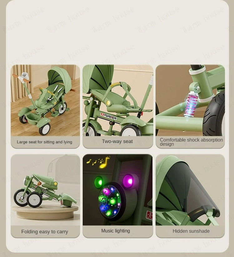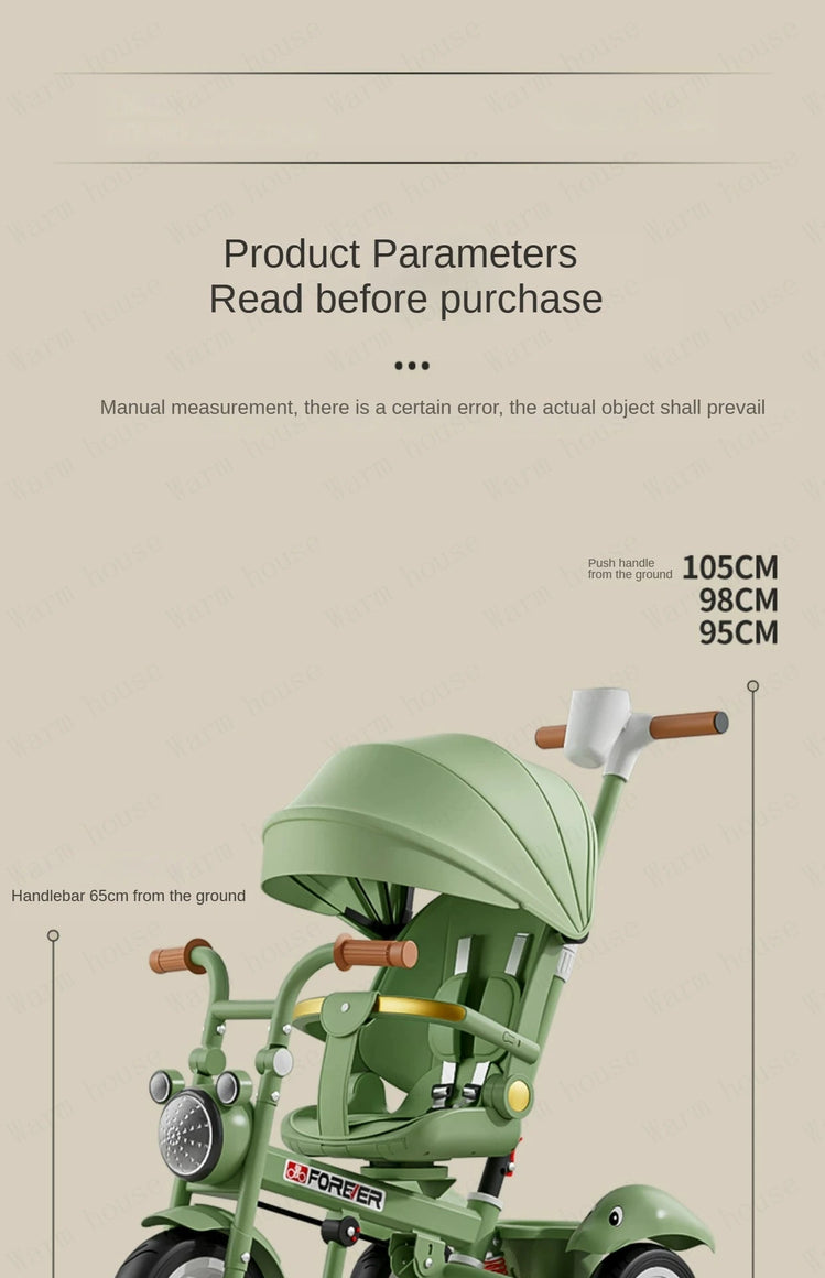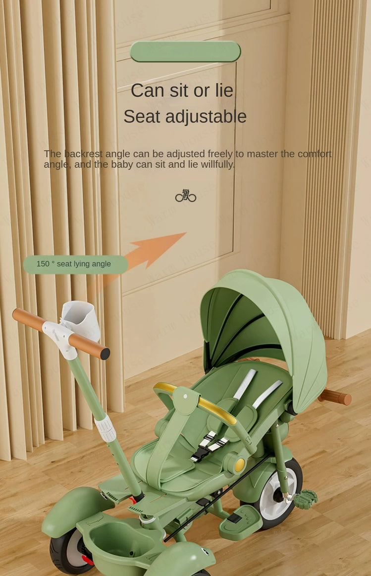 New Children's Tricycle,Reclining and Sitting Foldable Portable Stroller,1-6 Years Old Multifunctional Children's Bicycle