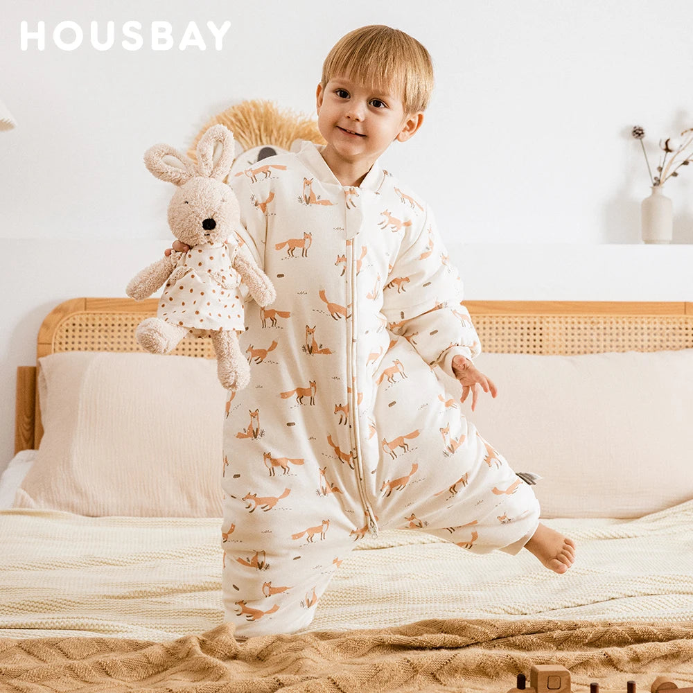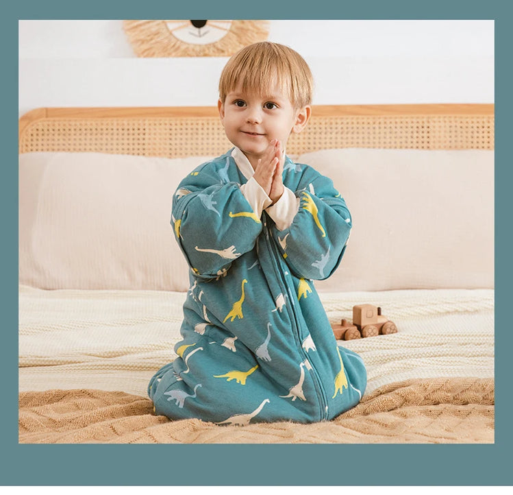 Sleeping Bag For Children 1-4 Years Neck Protection Warm Windproof 3 Zippers Design Removable Sleeves Baby Sleeping Bag 2.5Tog
