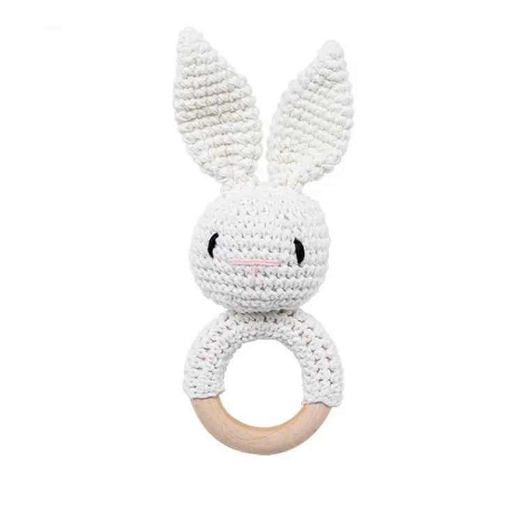 Baby Crochet Rattle Wooden Teether Toy BPA Free Wood Rodent Rabbit Rattle Baby Mobile Play Gym Newborn Educational Music Toys