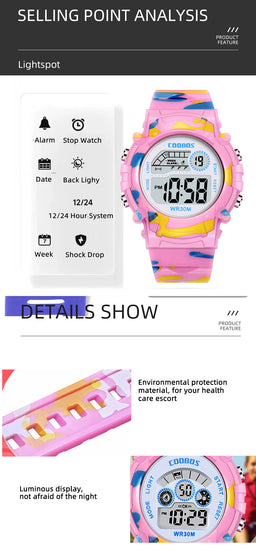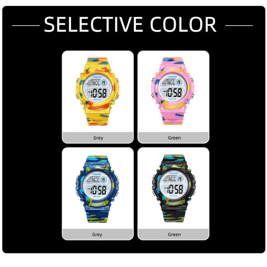 • Camouflage Design :The watch features a camouflage design, which is popular among children and adds a touch of style to their outfit.