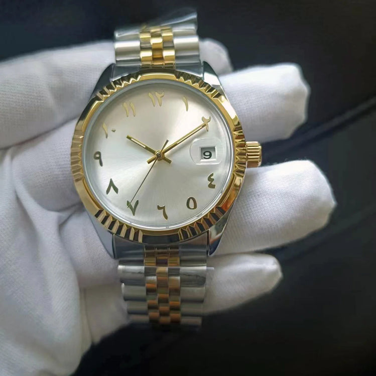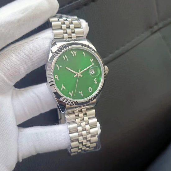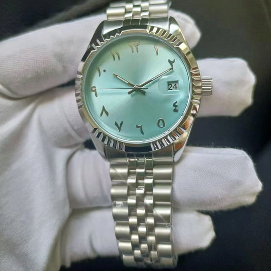 Baby Blue Arabic Watches Unisex Steel Watchband Mechanical Wristwatch Waterproof